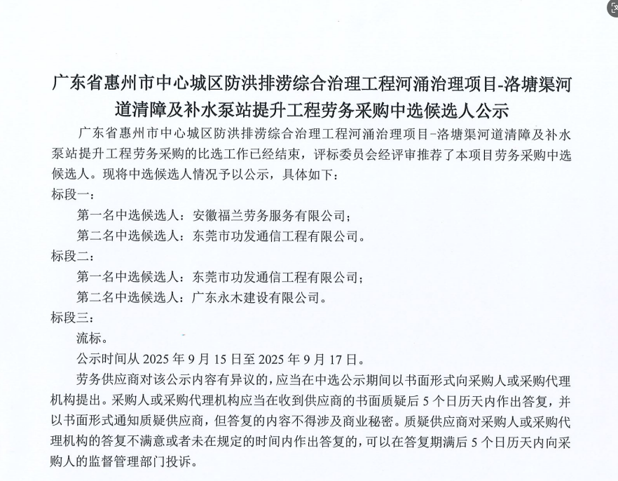 惠州市水電建筑工程有限公司勞務供應商庫擴庫評審結(jié)果公示……
